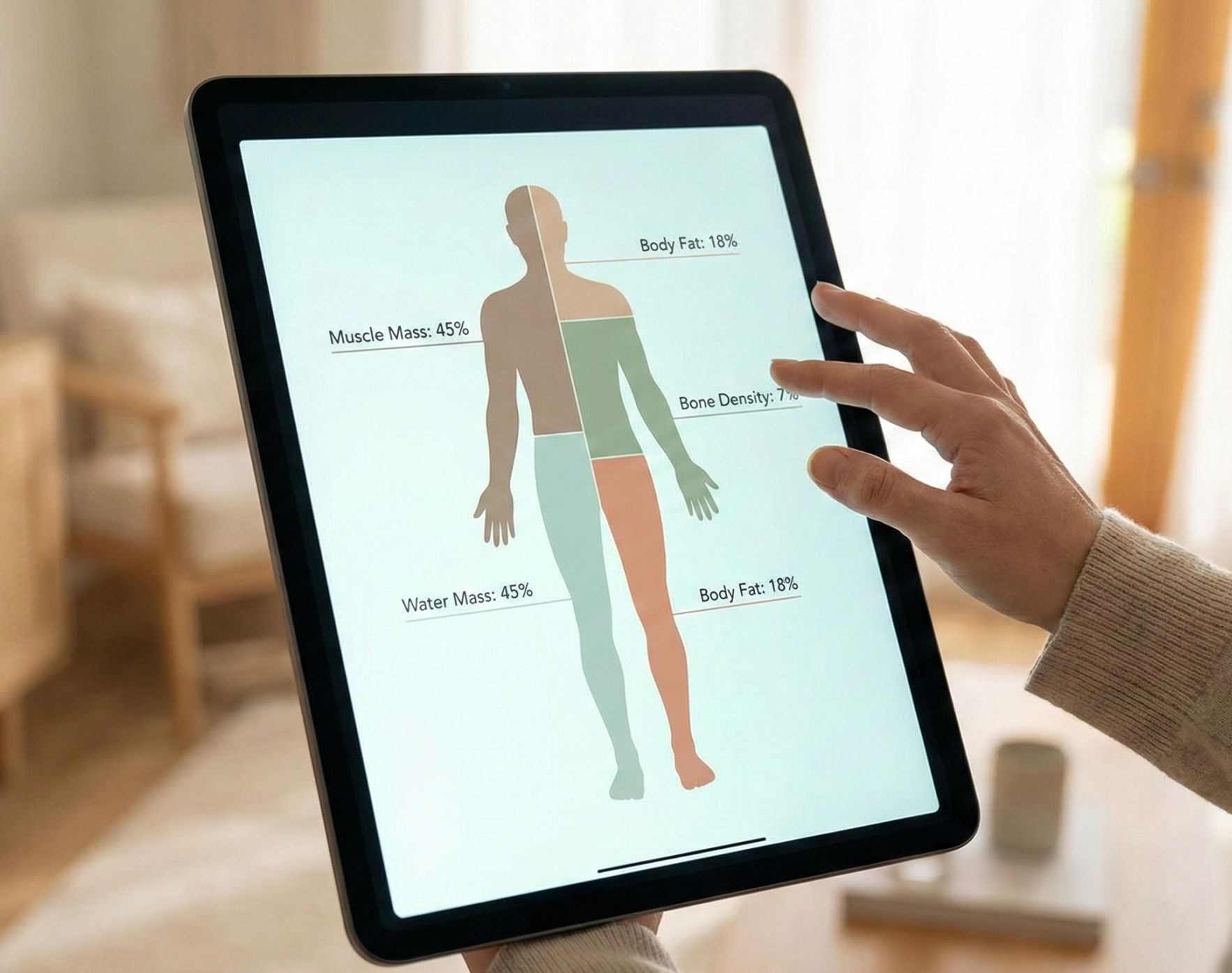 A traditional scale only tells a fraction of your health story. Our advanced body composition analysis measures your unique ratio of muscle mass, body fat, and hydration levels.
